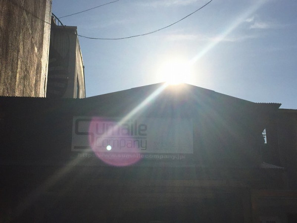 裏の建物の屋根が富士山みたいで、太陽が良い位置にきてます!!