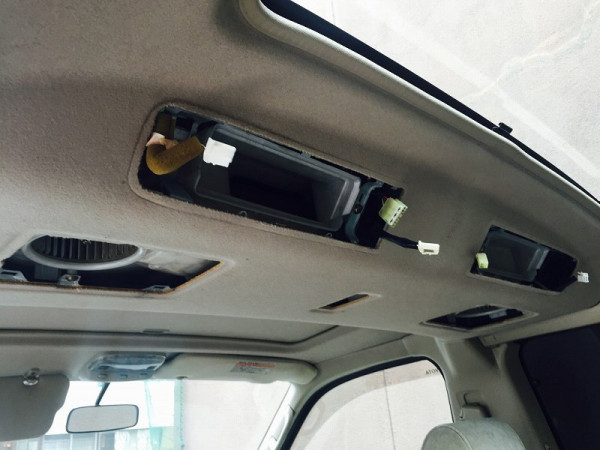 天井パネルの裏側にモニター配線を回す為、かなり大がかりな作業になりました!!