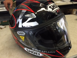 ヘルメットも雨用のシールドに交換です!